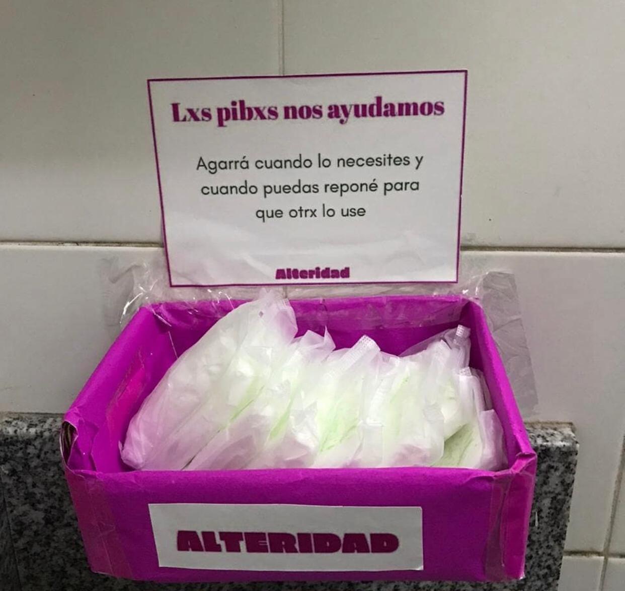 Colocamos tres dispensers con preservativos en distintas partes del colegio para que todxs puedan agarrar libremente porque sabemos lo importante que es cuidarnos entre nosotrxs.