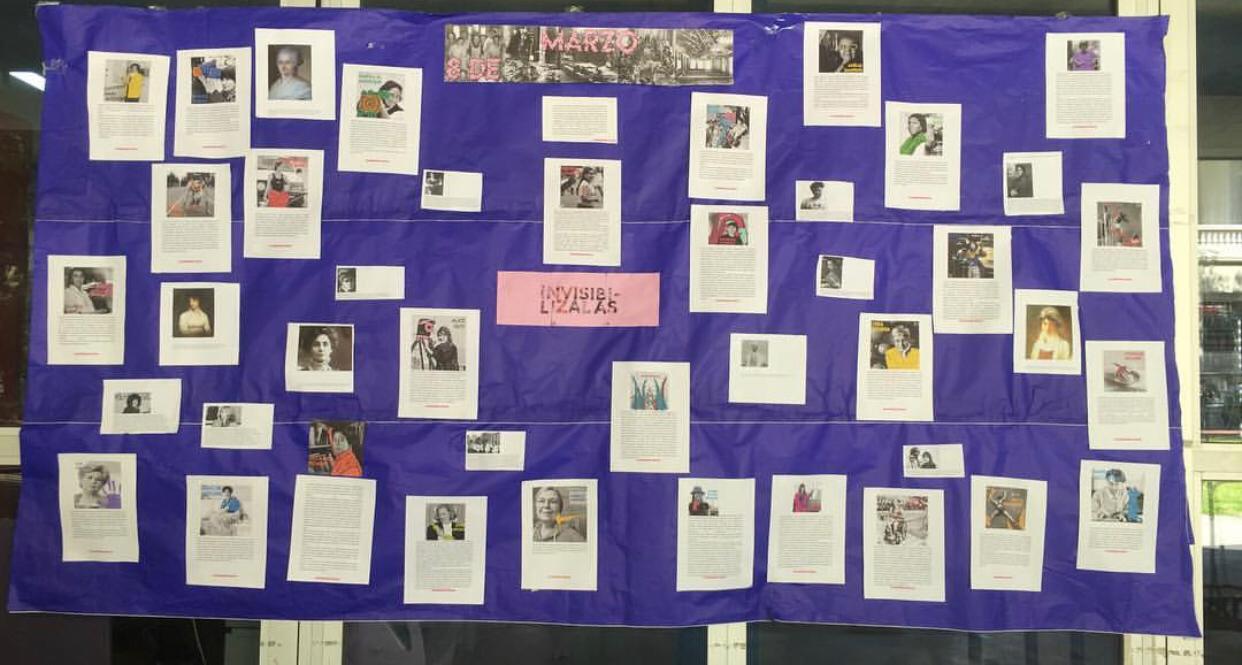 En el marco del dia de la mujer trabajadora realizamos distintas intervenciones de mujeres invisibilizadas a lo largo de la historia y tambien sobre aquellas mujeres víctimas de la violencia machista.