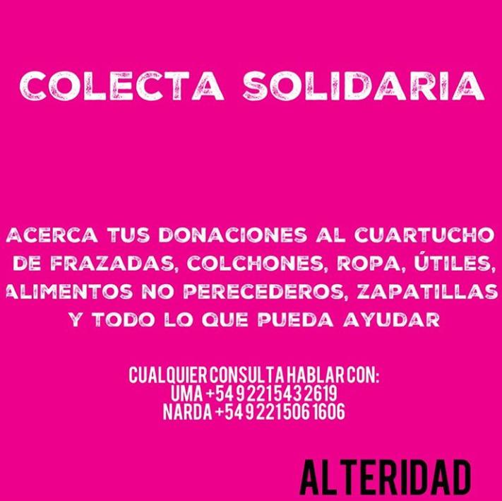 Realizamos distintas colectas solidarias para ayudar a lxs compañerxs de los barrios que lo necesiten.