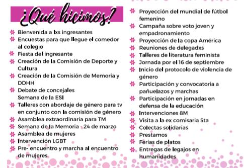 A lo largo del año realizamos algunas reuniones de delegadxs para turno tare, turno vespertino y turno mañana para conocer mejor las necesidades y reclamos de lxs alumnxs del colegio.